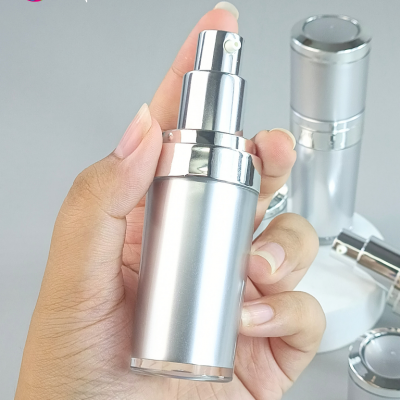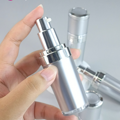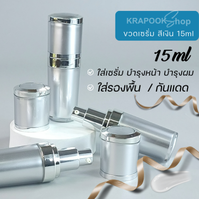 ขวดปั้มพรีเมี่ยม 15ml ขวดเงิน ขวดโรสโกลว์ ขวดปั้มมีสาย
