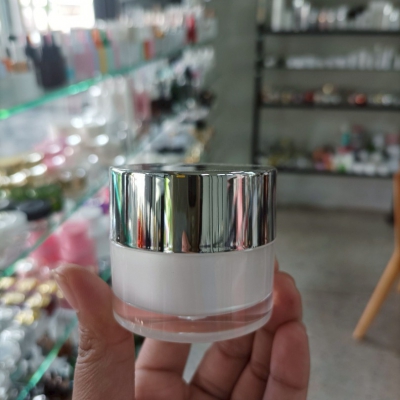 กระปุกอะคิลิค ถ้วยขาวคาดเงิน 10g