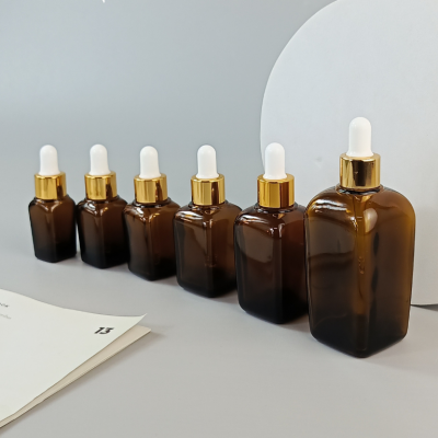 รวมขวดเซรั่มทรงเอสเต้ 6ขนาด สีชา ขวดอโรม่าสีชา