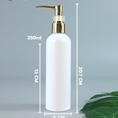 ขวดปั๊มฝาทอง 250 มล. สำหรับบรรจุโลชั่น ครีมอาบน้ำ หรือสบู่เหลว ใช้งานง่ายเพียงแค่กดปั๊ม เหมาะสำหรับใช้ในบ้านและโรงแรม