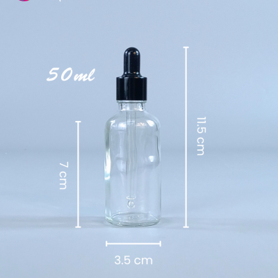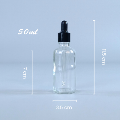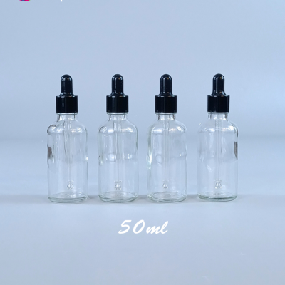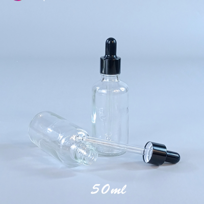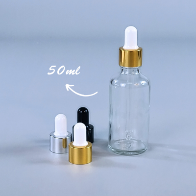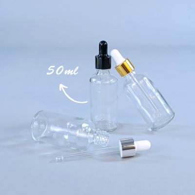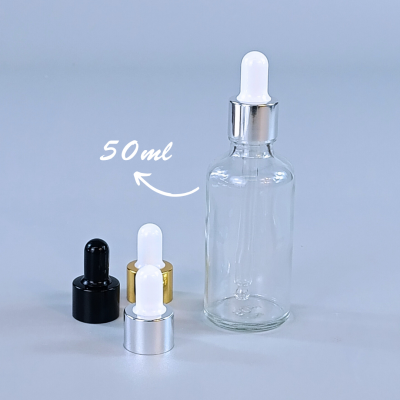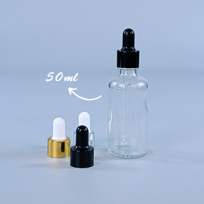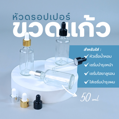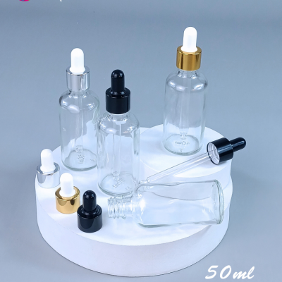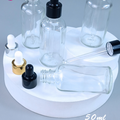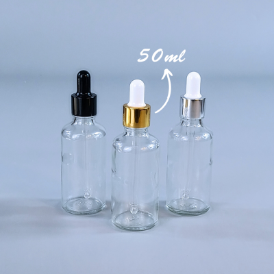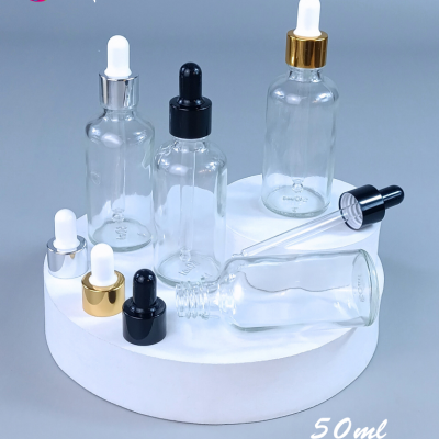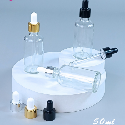 ขวดแก้วดรอปเปอร์ใส 50ml ฝา3สี สีดำ สีเงินเงา สีทองเงา ใส่เซรั่มไฮยา เซรั่มทองคำ เซรั่มบำรุงผิว #ขวดยาปลา