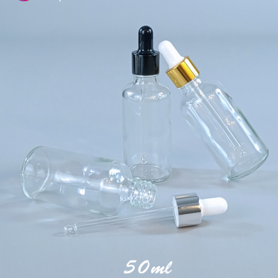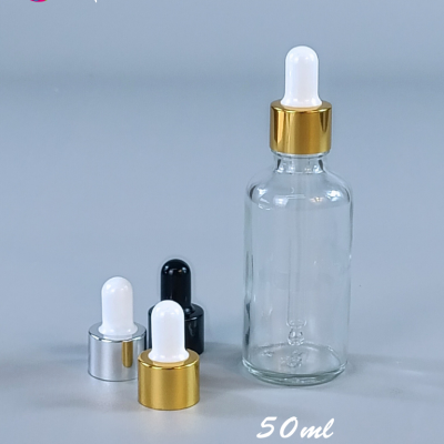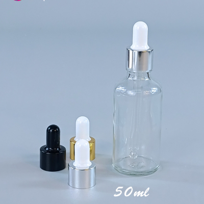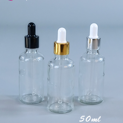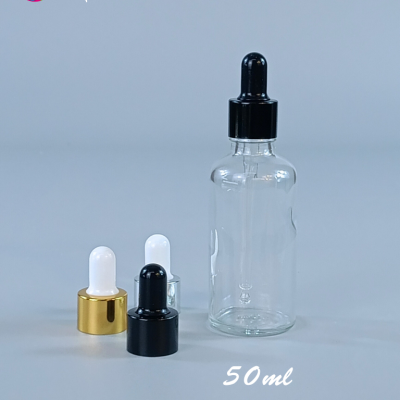 ขวดแก้วดรอปเปอร์ใส 50ml ฝา3สี สีดำ สีเงินเงา สีทองเงา ใส่เซรั่มไฮยา เซรั่มทองคำ เซรั่มบำรุงผิว