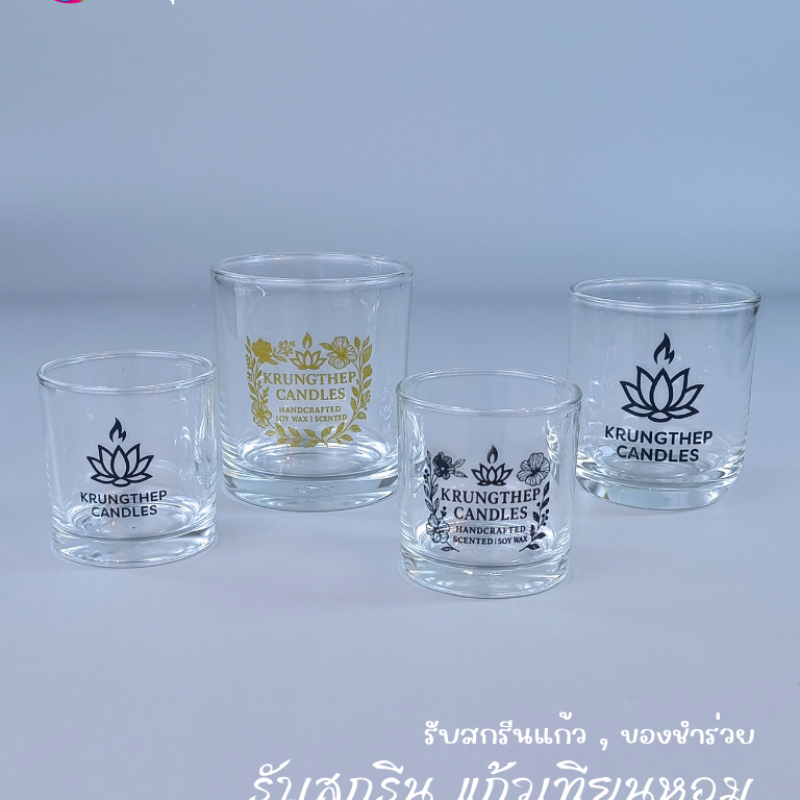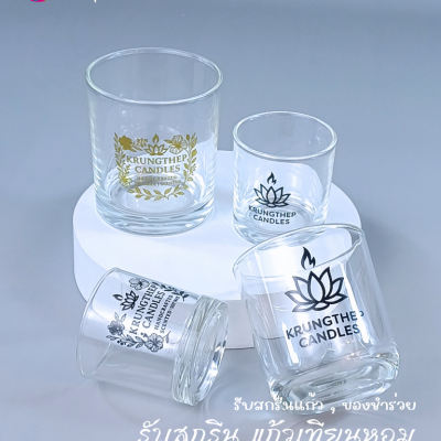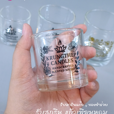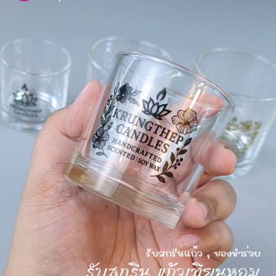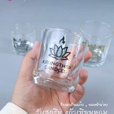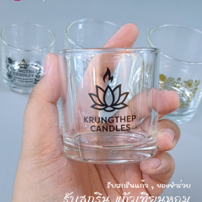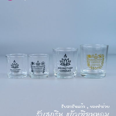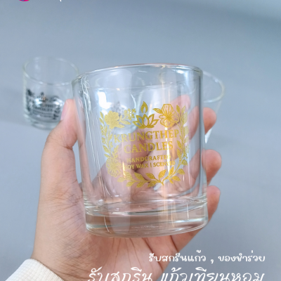 งานสกรีนถ้วยเทียนหอม สกรีนสีทอง สีดำ